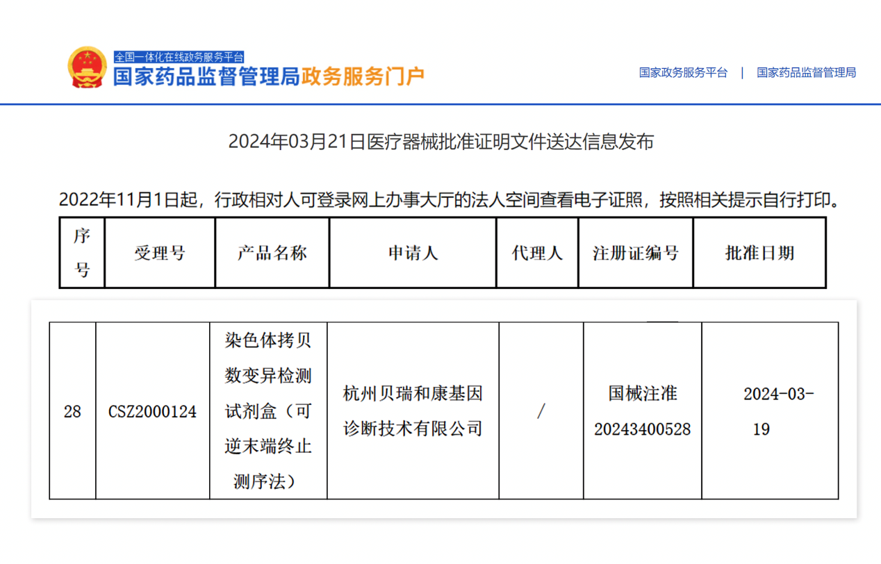 貝瑞基因CNV-seq檢測(cè)試劑盒獲國家藥品監(jiān)督管理局(NMPA)批準(zhǔn)上市!